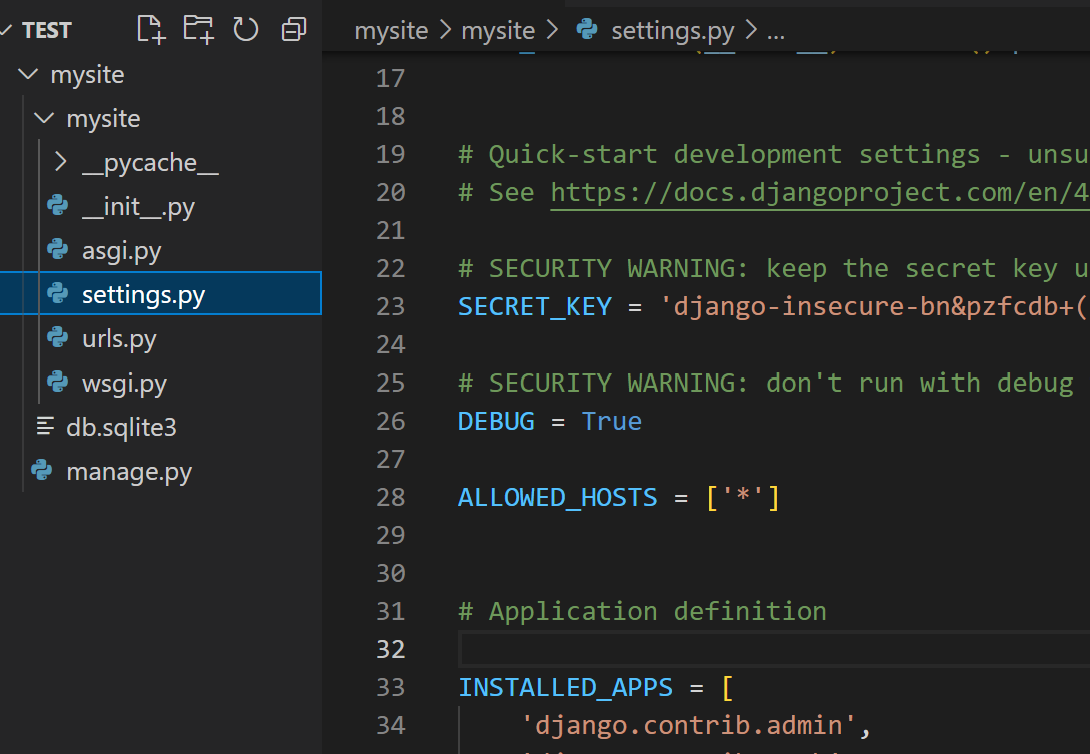 기본적으로 Django 설치 시 아래와 같은 구성으로 구성 됩니다.