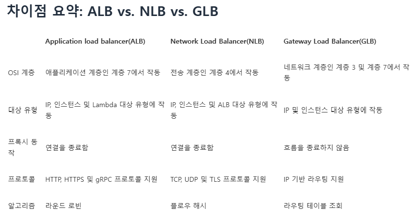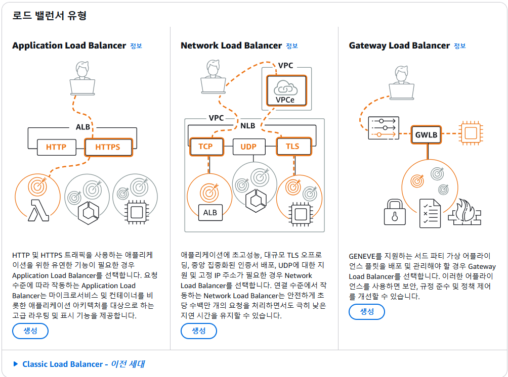 - AWS에서 아래와 같은 LB 유형을 제공하고 있습니다.