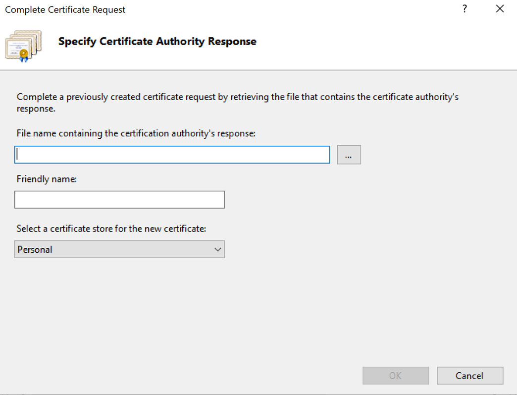 - 다시 Server Certification으로 돌아와서 "Complete Certifiacte Request" 실행