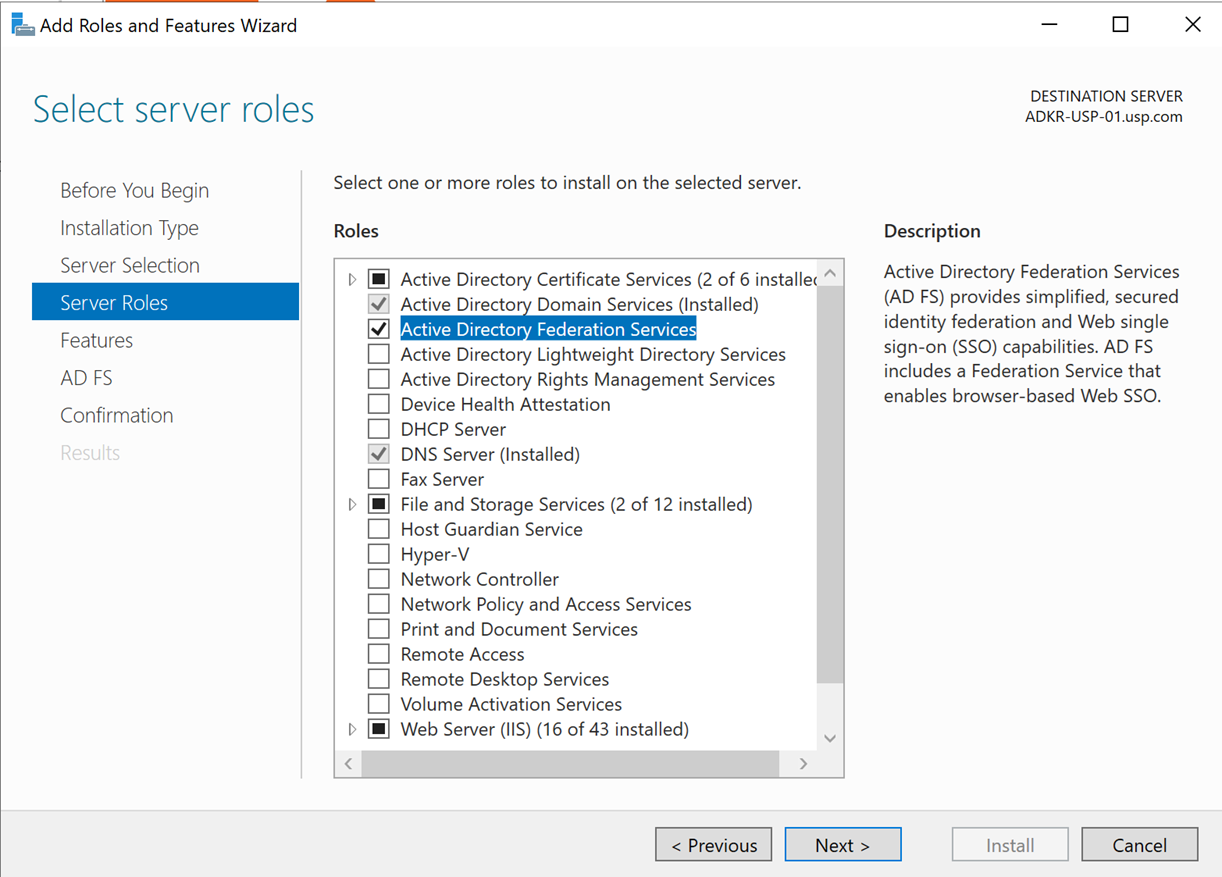 - 다음으로, AD FS 기능 설치를 진행합니다.