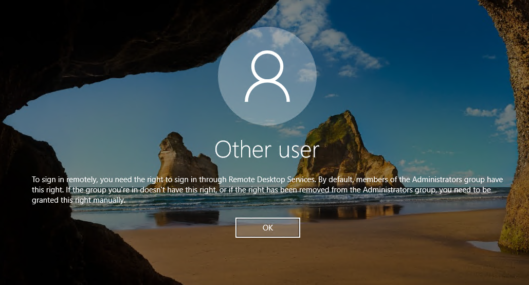 : 생성한 도메인 계정으로 로그인 시도 시 원격 접속 시도
