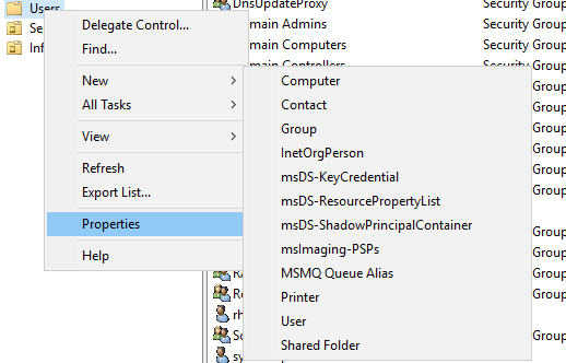 : 서버 관리자->도구->Active Directory Users and Computers 선택