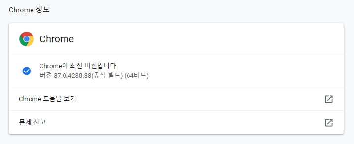 # Chrome 버전 확인 - Chrome 접속 - 설정 - Chrome 정보 - Chrome 버전 확인