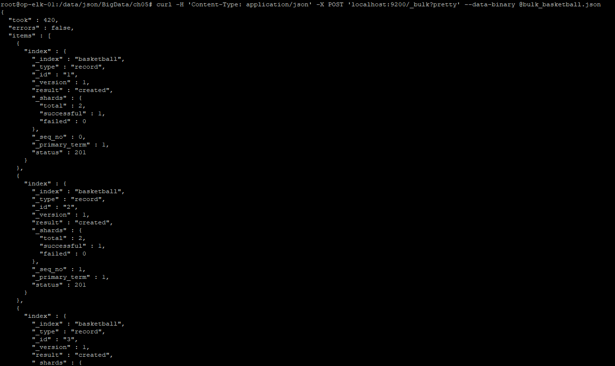 # curl -H 'Content-Type: application/json' -X POST 'localhost:9200/_bulk?pretty' --data-binary @bulk_basketball.json