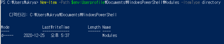 > New-Item -Path $env:Userprofile\Documents\WindowsPowerShell\Modules -ItemType directory