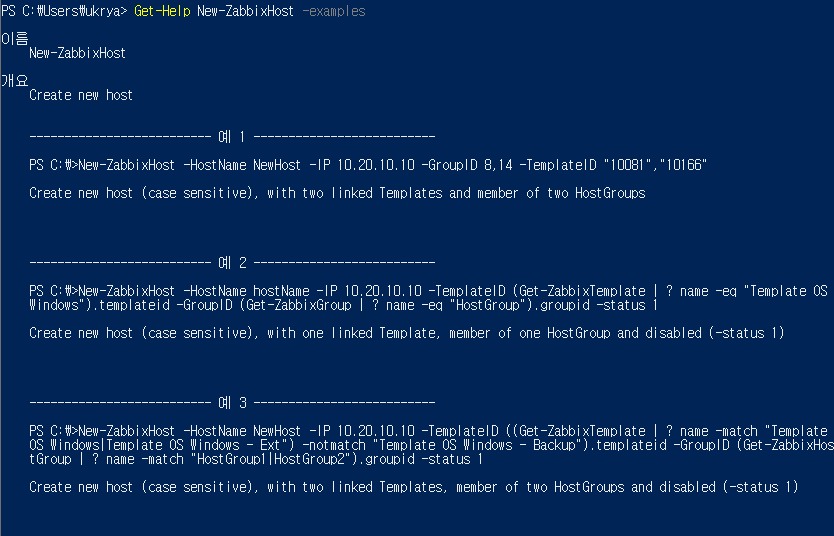 - 모듈 설치가 완료되었으면 위에서 말씀 드린대로 Powershell에서 기본 명령어처럼 사용이 가능합니다.