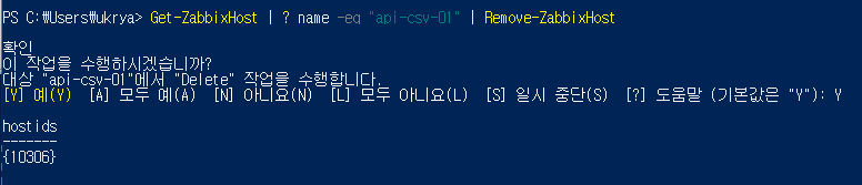 - 예시 6번을 활용하여 단일 호스트 삭제를 진행해봅니다.