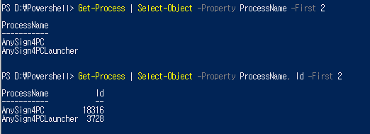 출력 제한 예시 - 표시할 속성 지정 a. -Property 속성1, 속성2...: 선택한 속성만 표시