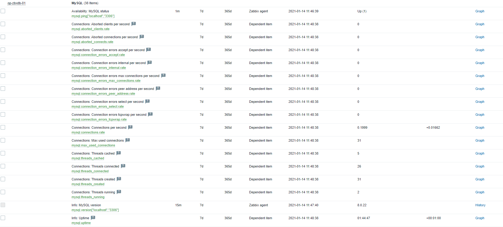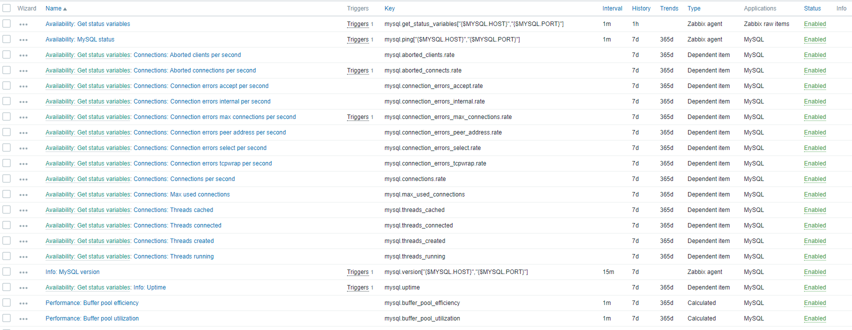 Zabbix MYSQL Template 적용 본문