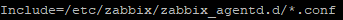 - zabbix 설치 후 기본 세팅을 보시면 아래와 같이 zabbix_agentd.d 폴더의 conf 파일을 같이 Include 하게 되어 있습니다. ( 프로그래밍 시 라이브러리를 임폴트 하는 개념과 비슷하게 생각하시면 될거 같습니다.)