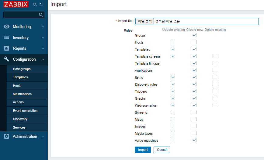 - Gihub의 Template을 Imort 시켜 줍니다. - zbx_Linux_Process.xml