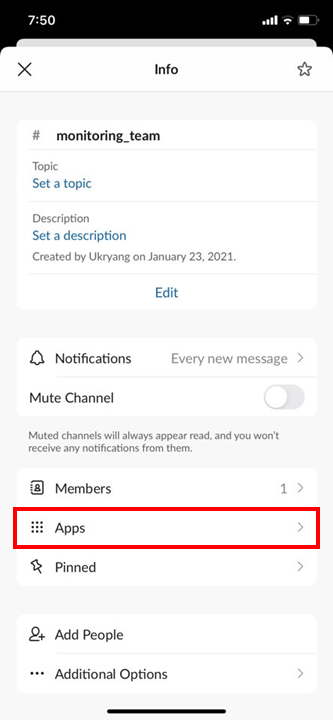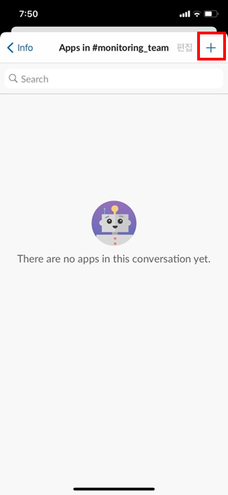 - + 버튼을 눌러 준 후 아까 추가한 App 이름을 검색한 후 해당 채널에 추가해줍니다.