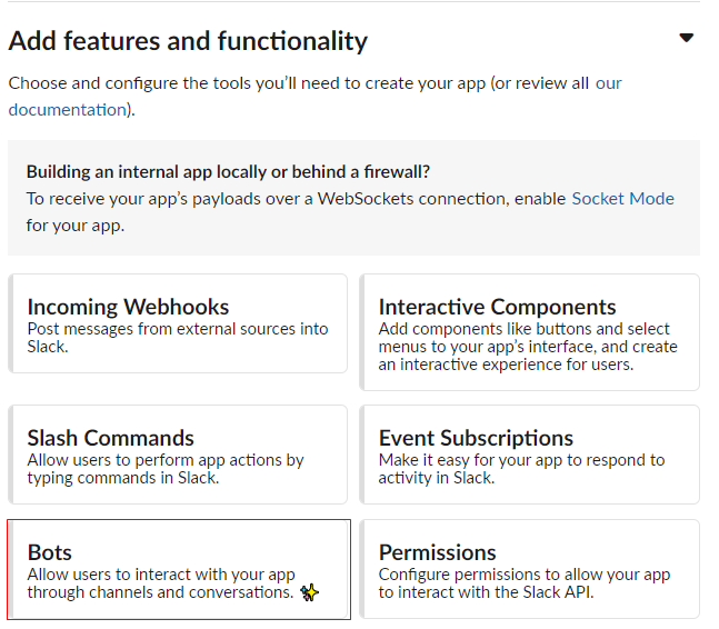 - Bots 설정을 위해 아래 Bots 버튼을 눌러줍니다.