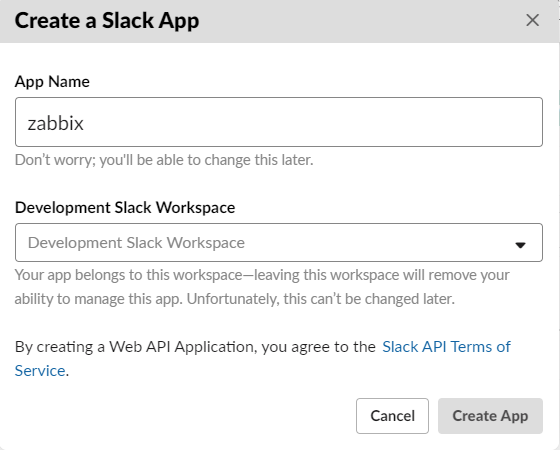 - App 이름을 입력 후 App을 할당할 Workspace를 지정해줍니다.