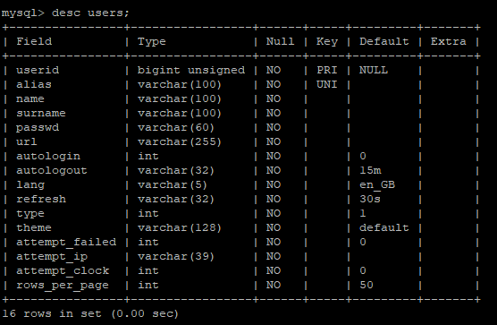 - 관계(Relation): 데이터의 중복을 피하기 위해, 데이터들을 여러 테이블에 나누어 저장하게 되믄데, 예를 들어 users, usergroup, hosts 등의 여러 테이블이 존재할 때 각각의 테이블들은 서로 다른 테이블에 저장되지 않은 데이터만을 가지게됩니다.