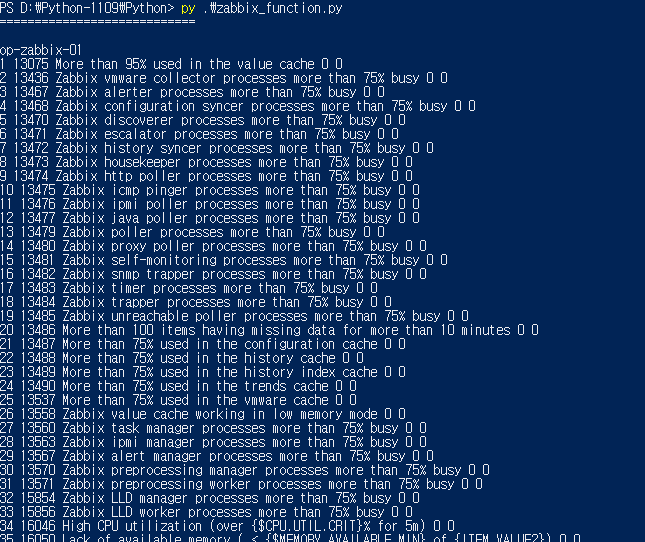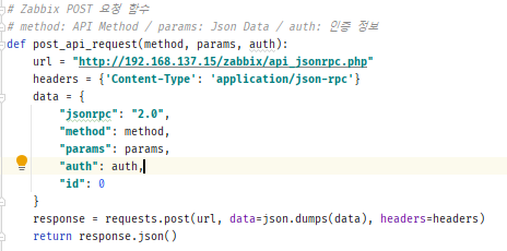 - get_hostid_all 함수 작성 : args 인자는 함수 실행 시 입력되는 인자는 배열 형태로 받아옵니다. ex) get_hostid_all(auth, test) --> args[0] = auth, args[1] = test // 이런 식으로 인자를 가지게됩니다.