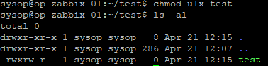 ex) u+x 사용자에게 실행 권한 부여