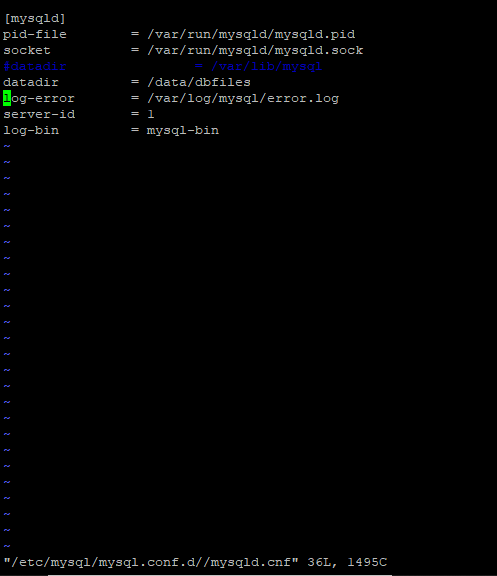 # vim /etc/mysql/mysql.conf.d/mysqld.conf