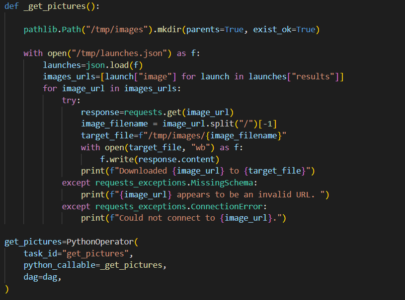 : PythonOperator를 통해 추출한 JSON 데이터에서 우주선 Image의 URL을 가져와 Image 다운로드 및 저장