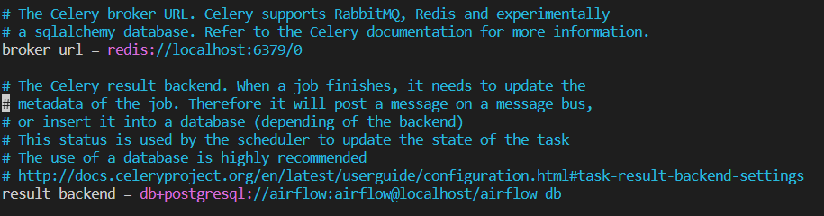 ## DB 관련 중간 작업은 이전 게시물 확인 바랍니다. ## 아래 설정도 이전 게시물에서 완료된 설정입니다! > vim /home/airflow/airflow/airflow.cfg ## Airflow Celery Flower, Celery Worker 실행 > airflow celery flower > airflow celery worker