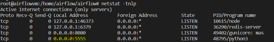 ## 정상 실행 시 아래와 같이 flower가 Default 5555 포트에서 실행됩니다. > netstat -tnlp